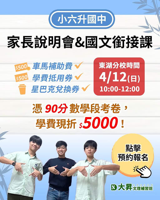 升學的路上,讀書有時並非埋頭苦幹就能得到回報,但養成正確的生活態度與讀書習慣往往能提昇學習的成效。大昇不只教導孩子如何讀書,也告訴孩子如何當一位好學生。