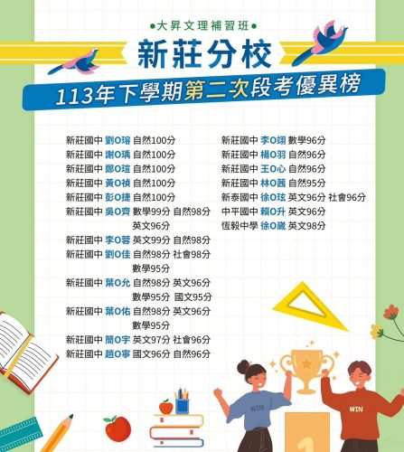 【信義分校】113年下學期國中第二次段考優異榜😍